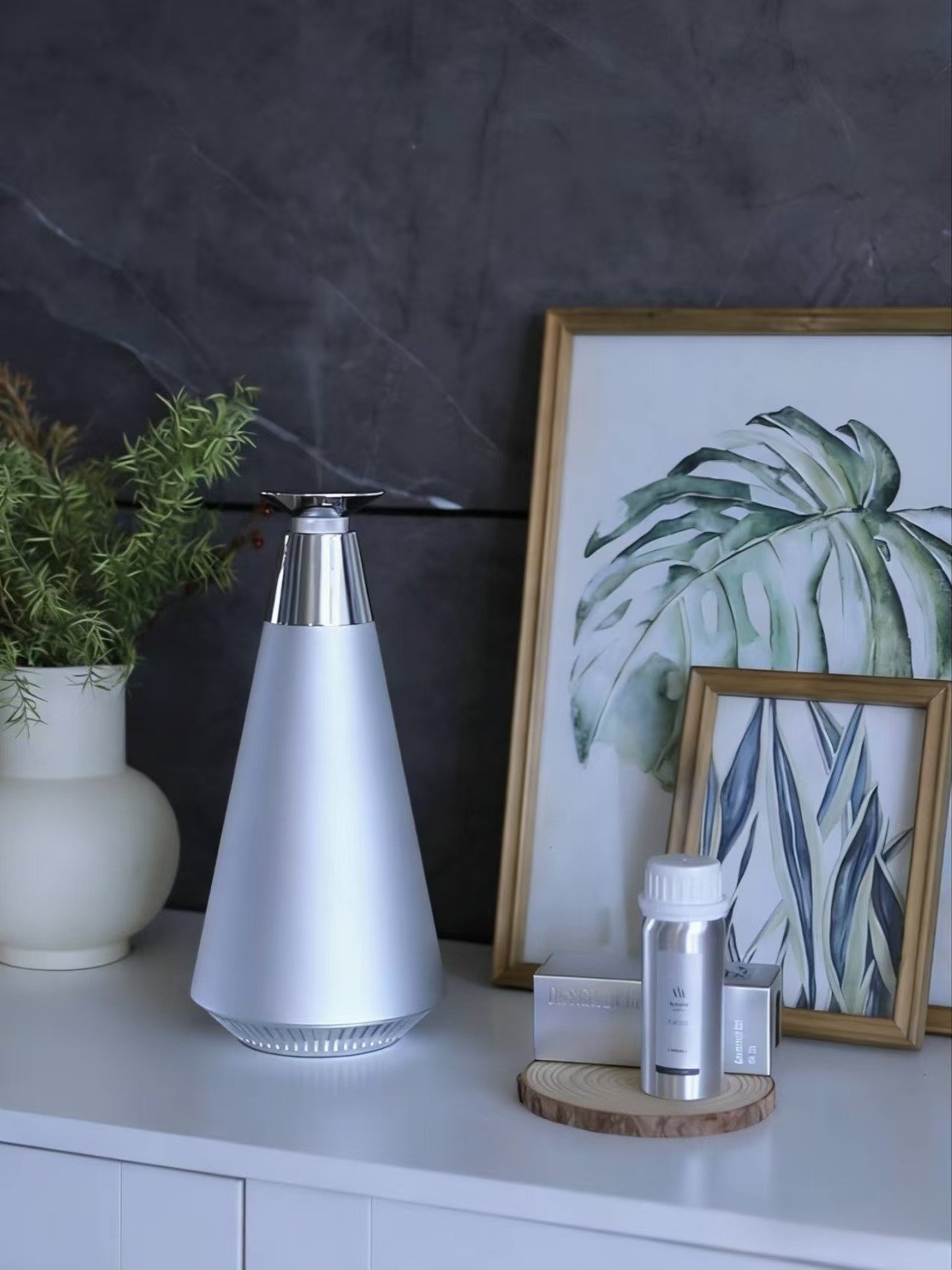 1.) Twin-Fluid Atomization: Delivers a consistent, ultra-fine, and perfectly uniform fragrance mist.