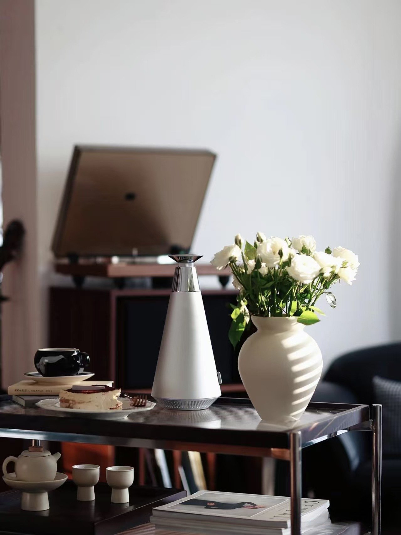 2.) Unique “Lighthouse” Design: Features integrated intelligent ambient lighting with three selectable colors (Green, Blue, and Red) to set the perfect mood.