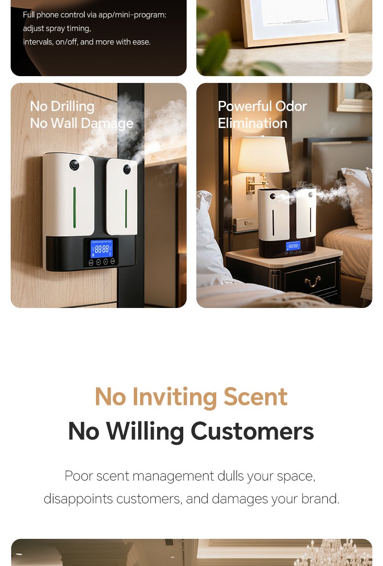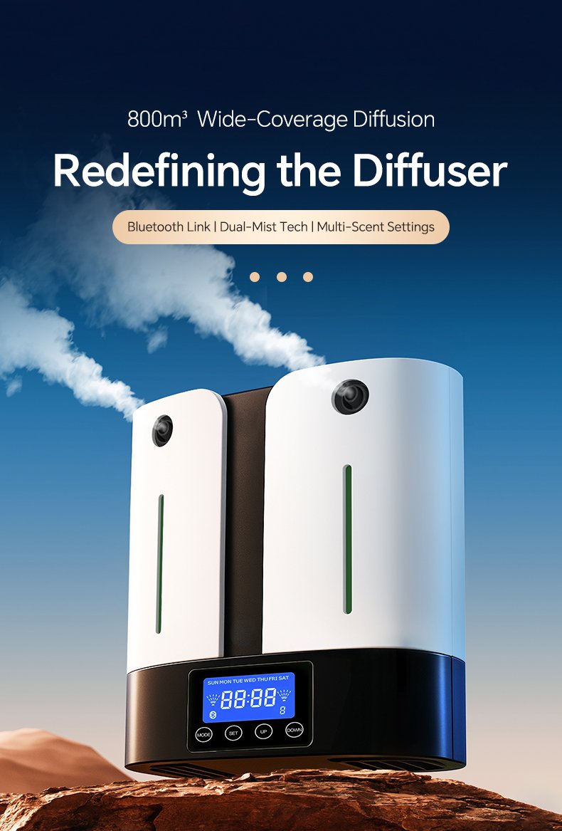 Twin-Fluid Atomization: Delivers an ultra-fine, consistent, and even fragrance mist.
