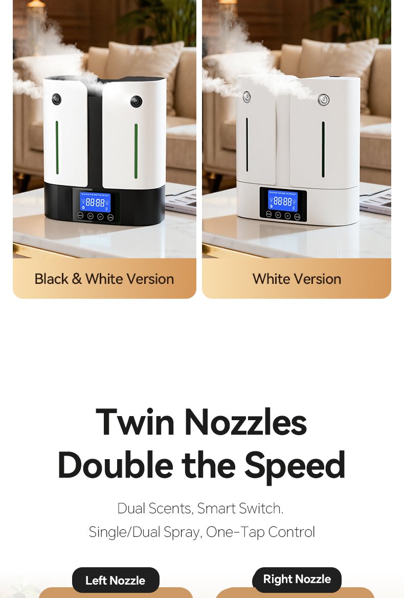 Dual-Nozzle System: Double the output for large spaces; one-tap switching between single/dual modes.