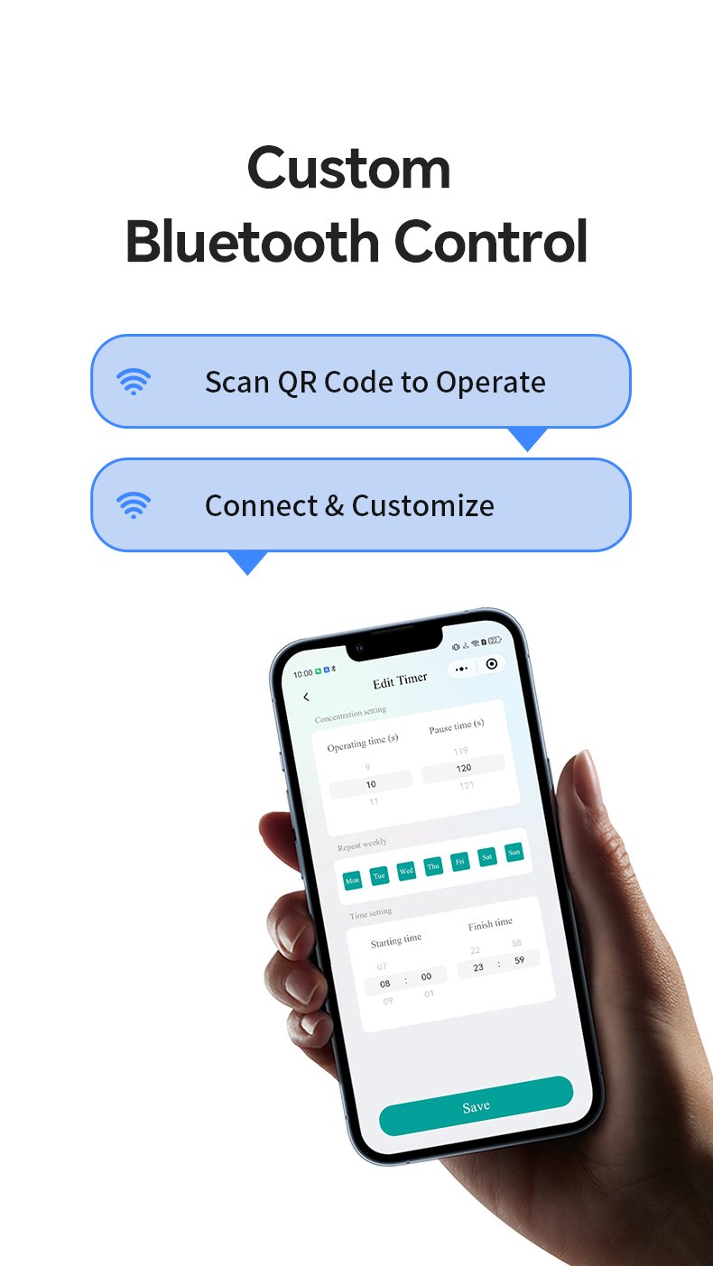 d.Custom Mode: Fully personalized weekly schedules and timing via Bluetooth.